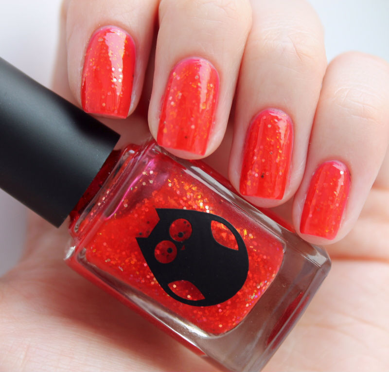 Трудно не восхищаться тем, что делает Аня, и эта коллекция не стала исключением, она получилась просто потрясающей, и мне нравятся абсолютно все лаки, не смотря на разную текстуру и цвета) Первым лаком из коллекции Анны Гореловой, который я выбрала, стал "Жар-птица" Это лак-огонь, ярко-алая стекляшка с красным и золотым глиттером и очень мелкой оранжевой слюдой(хотя может она мне и мерещится!)